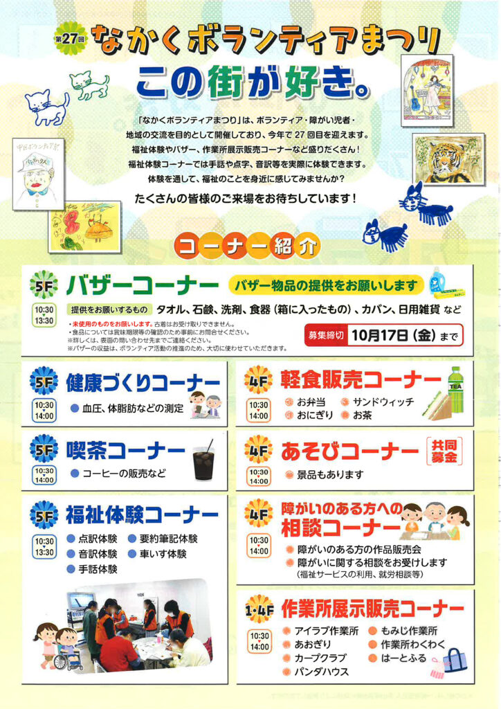 - 会場:第27回なかくボランティアまつり会場内 4階